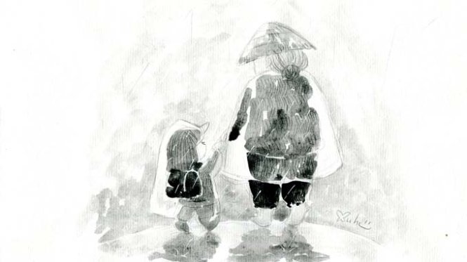 Bồng bềnh nở trắng dọc ngang mái đầu Buồn vui gửi ở miếng trầu Nụ cười có cả sắc màu nắng mưa Trưa hè cánh võng đu đưa Lời ru trầm bỗng nhặt thưa cánh cò Vườn quê chân bước lò dò Quả cà quả bí dành cho cả nhà Cháu ngoan bà để phần quà Thị thơm túi áo cháu bà cùng vui… |